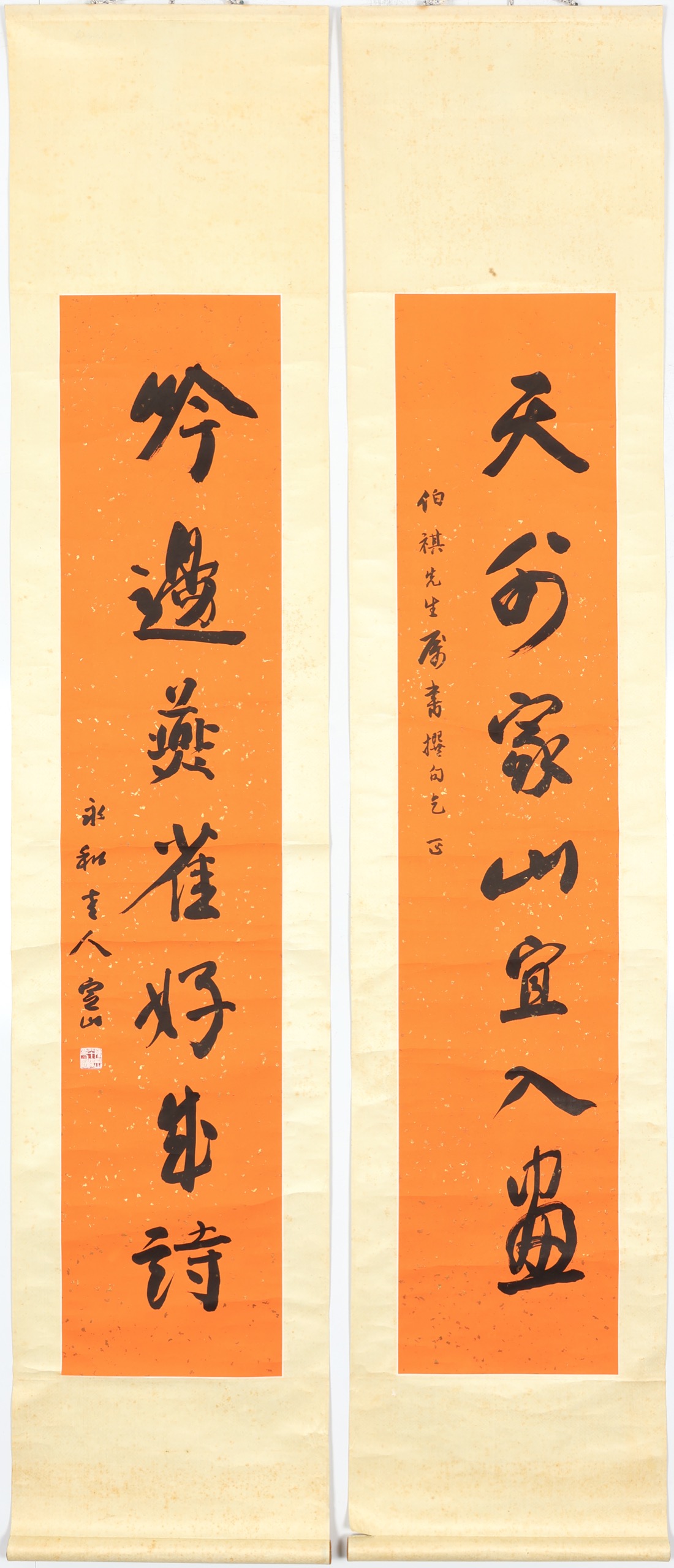 立軸 水墨 紙本 133.2x27.2cm x2
