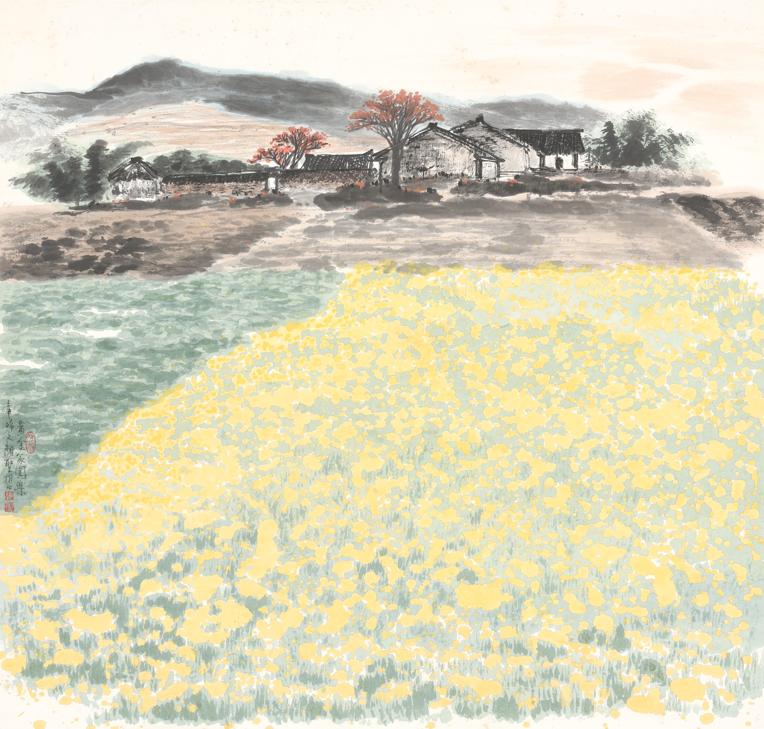 鏡片 設色 紙本 68x68cm