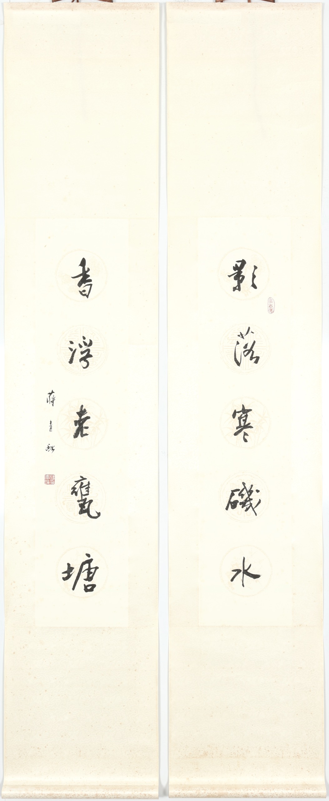 立軸 水墨 紙本 100.4x22.6cm x2