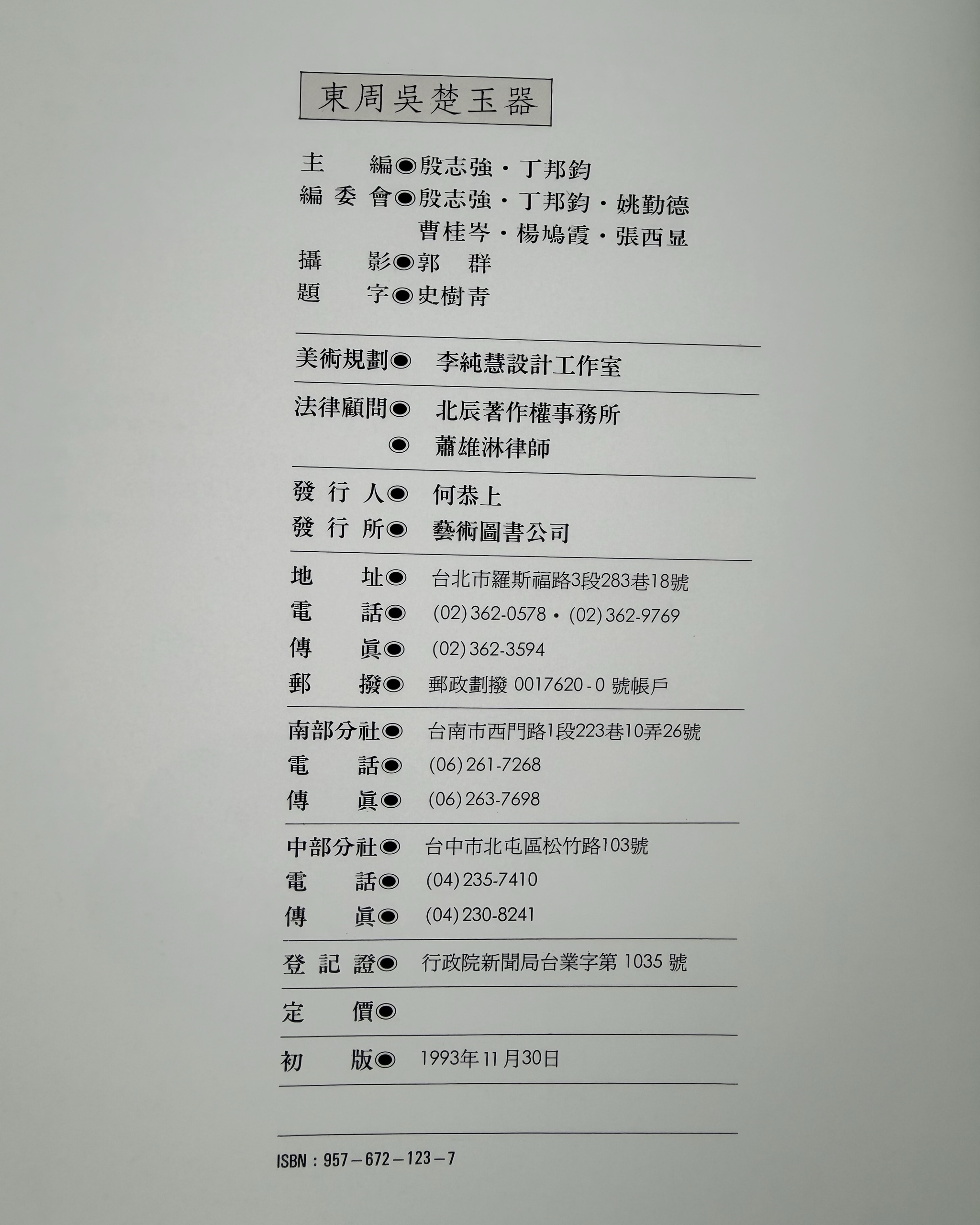 - 殷志強先生研究古代玉器歷有年所,發表過一系列學術論文。如(東南文化)1990年第1、2期所載(中國玉文化簡論),就古代玉器的地位和價值作了概括性的論述;(北方文物)1998年第1期所載(紅山、良渚文化玉器的比較研究),(華夏考古)1990年第3期所刊(略說齒牙形玉器),都是有獨到見解的力作。現在他撰成的這部(東周吳楚玉器),對當時兩國文化玉器作了深入詳細的分析探討。研究東周考古,對此自不可忽略。同時,書中大量珍貴器物,極富藝術價值,研究中國美術史,也不應錯過。相信(東周吳楚玉器)的出版,會對整個玉器研究的前進起很大的促進作用。