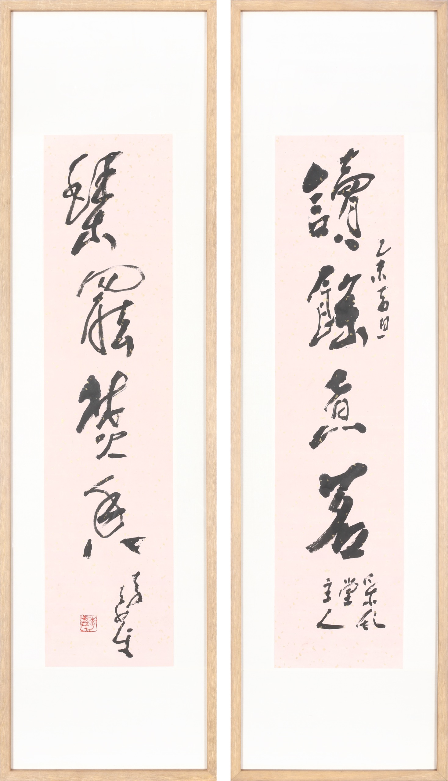鏡框 水墨 紙本 77.5x18.5cm x2