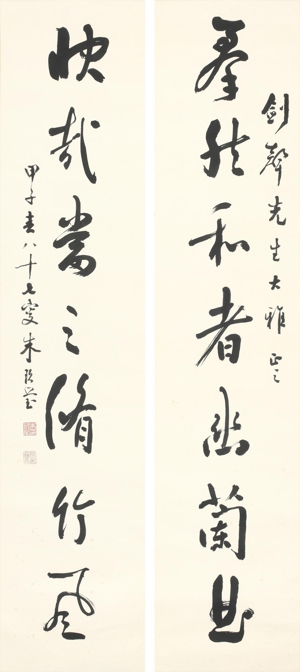 立軸 水墨 紙本 132.5x28.5cm x2