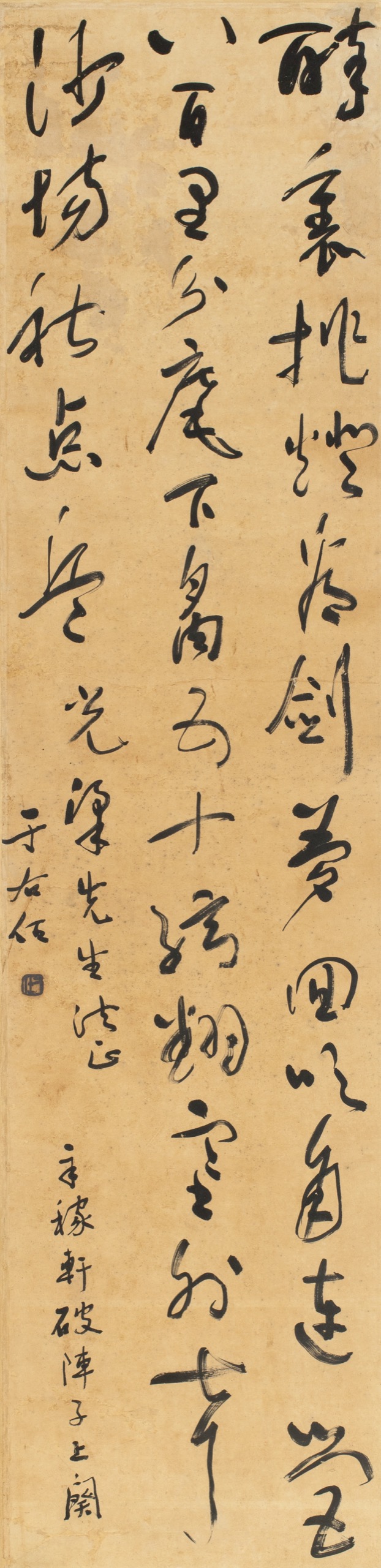 醉裏挑燈看劍,夢回吹角連營。八百里分麾下炙,五十弦翻塞外聲。沙場秋點兵。辛稼軒破陣子上闕。光梁先生法正,于右任。