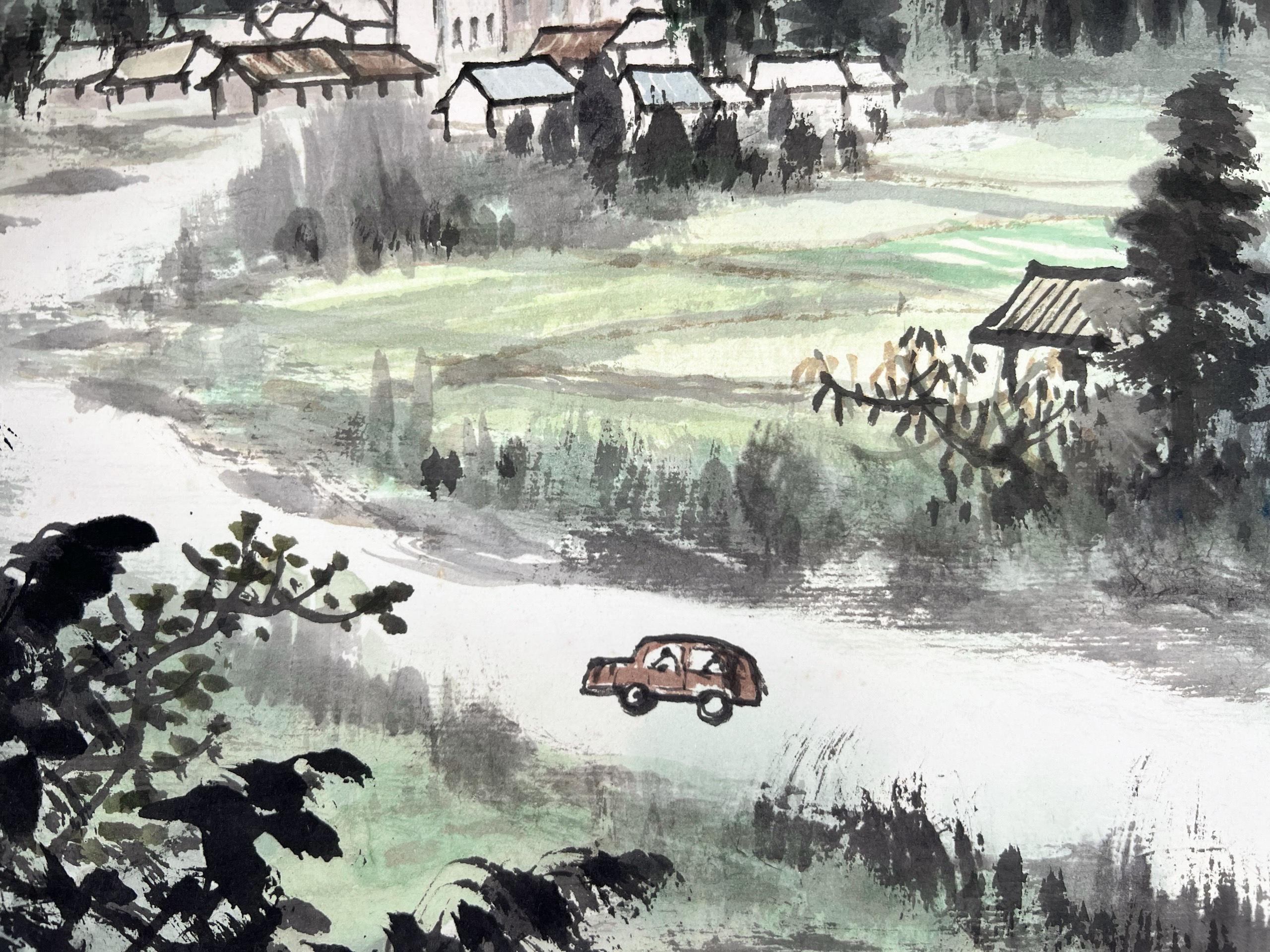 鏡片 設色 紙本 60x90cm
