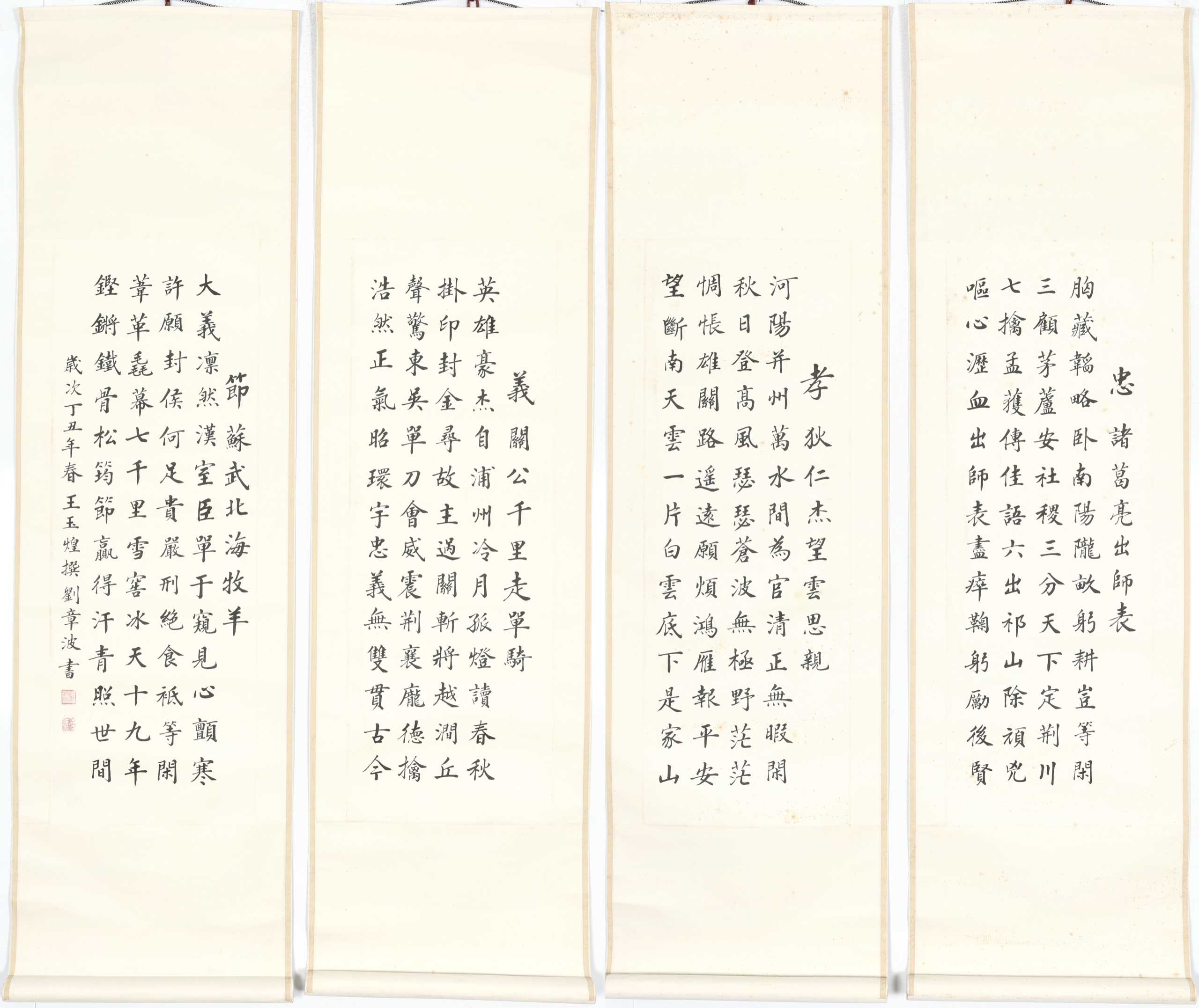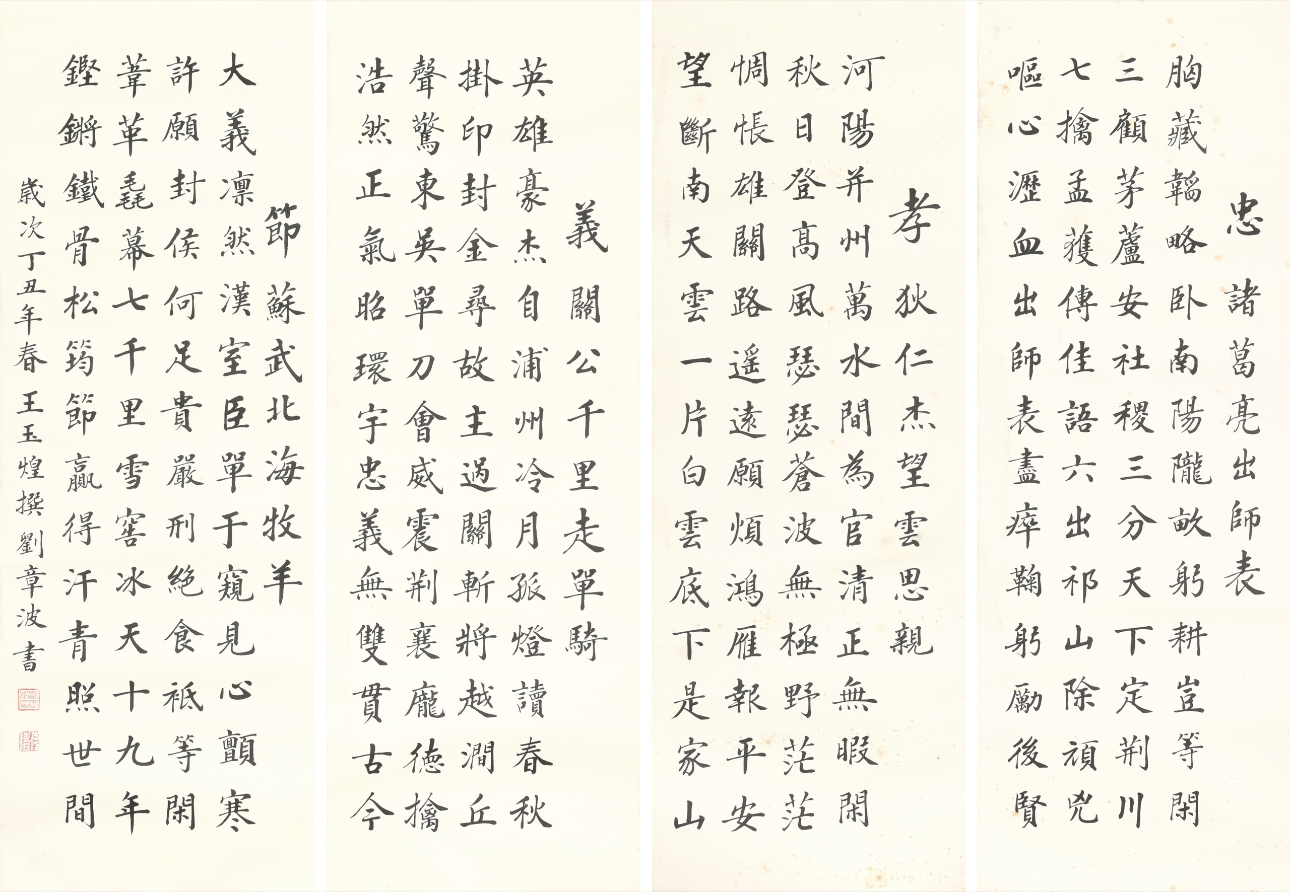 忠孝節義楷書四屏