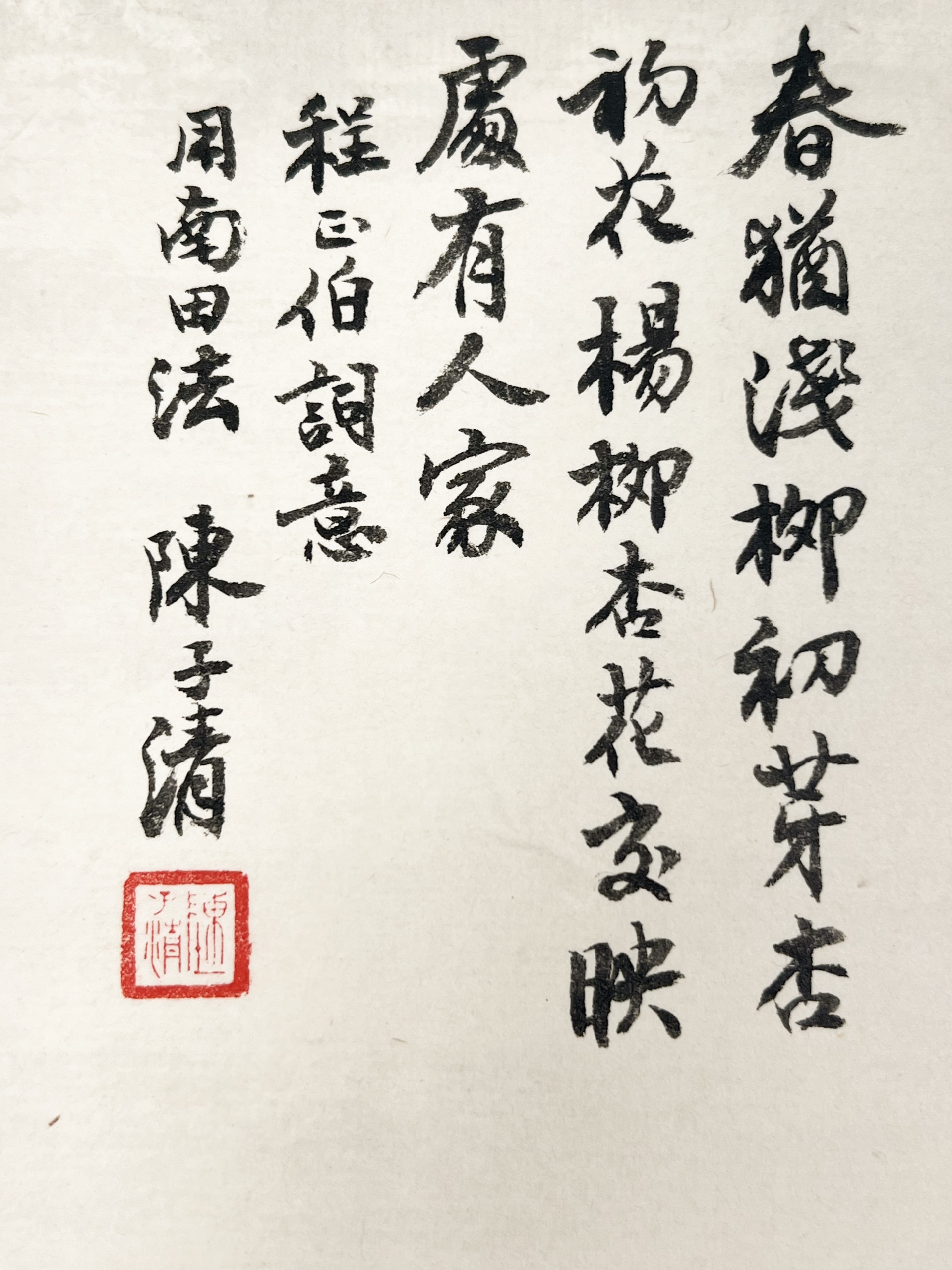 - 陳子清(1811—1889),字季腴,號玉壺、壺隱、一山,別署證真子。原籍廣東順德,後遷居香山員峰鄉(今屬中山)。清道光二十六年(1846年)中舉,終生以鬻畫為業,擅山水畫,書法師法柳公權。