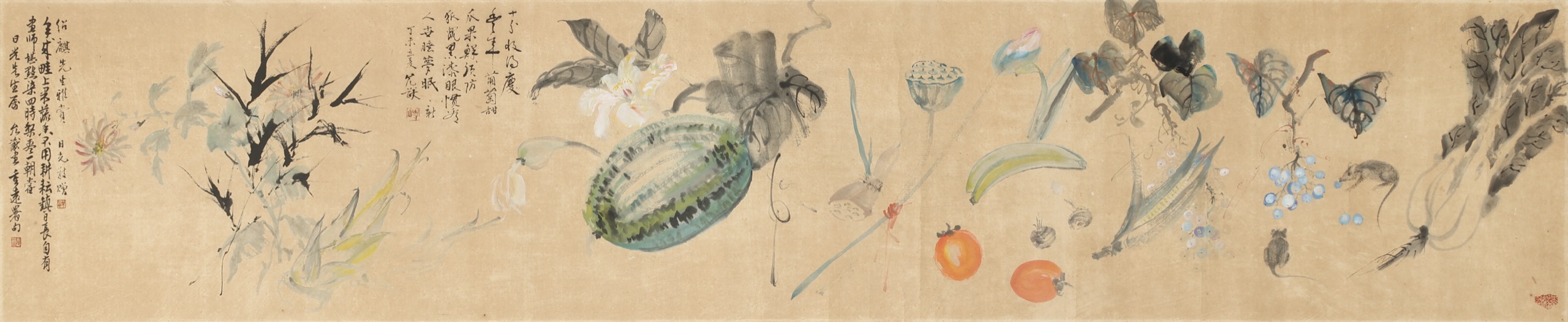 鏡片 設色 紙本 37x178.5cm