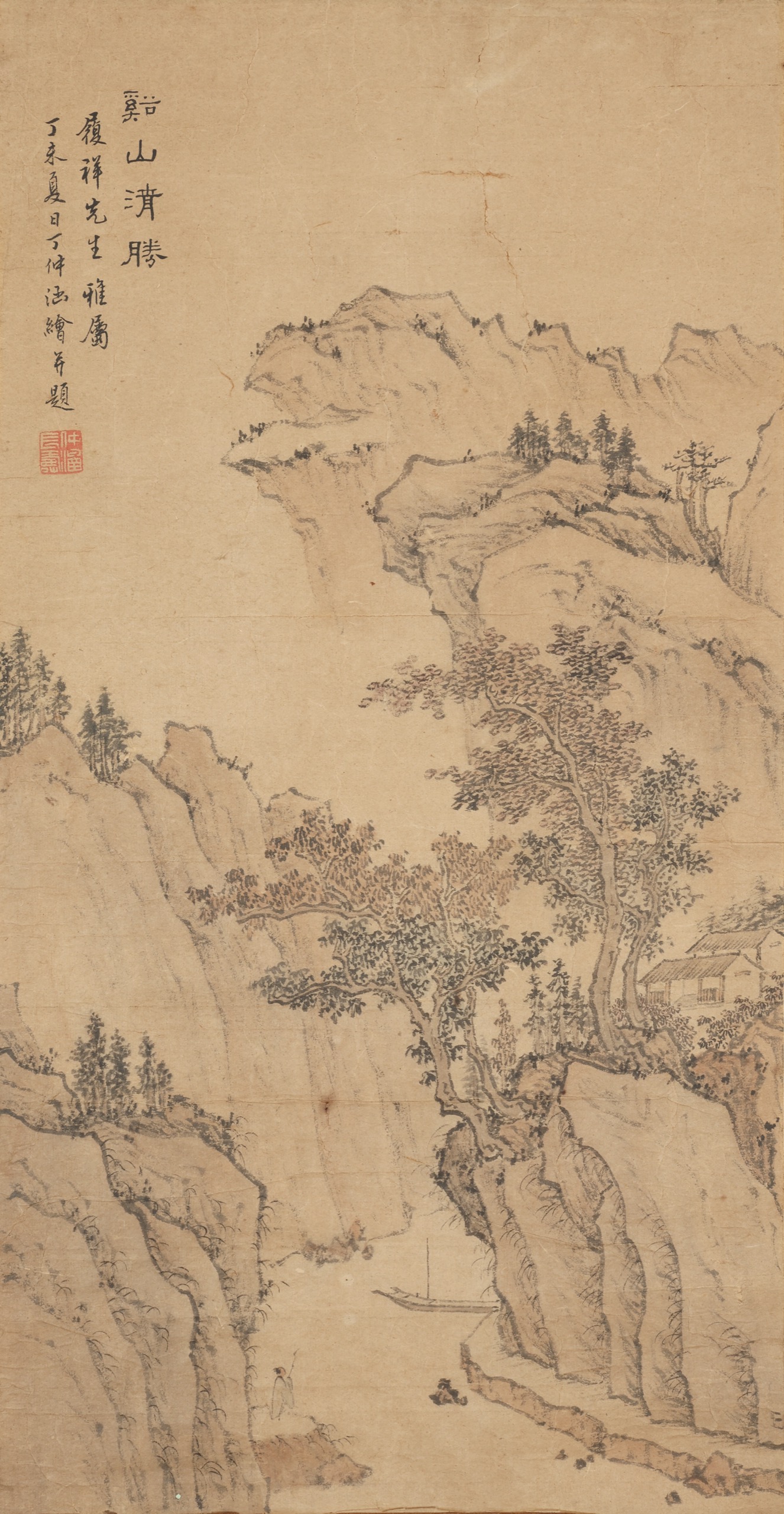 鏡片 設色 紙本 56x29cm