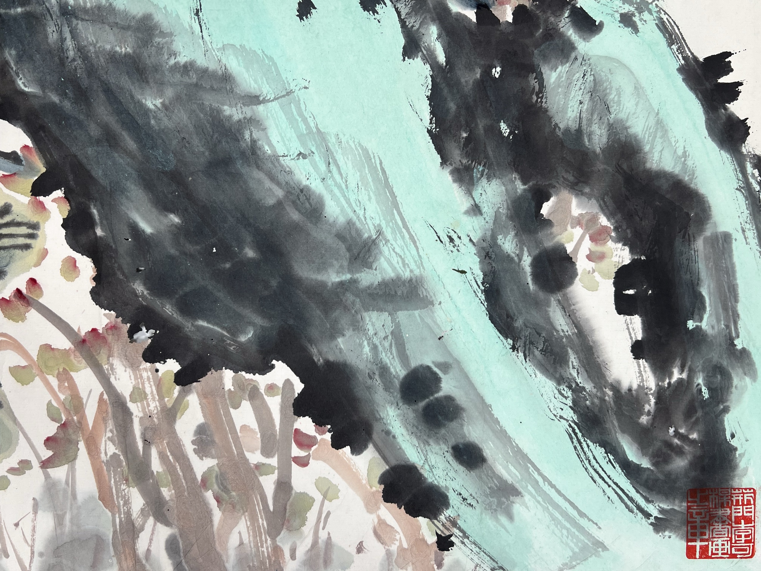 鏡片 設色 紙本 68.7x117.4cm