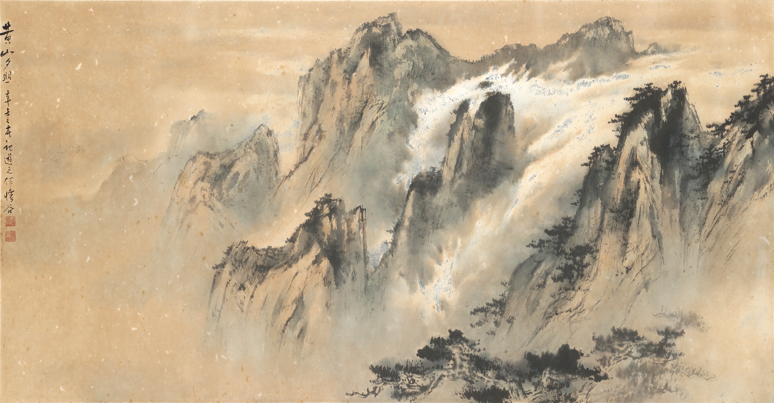 鏡片 設色 紙本 73.5x141cm