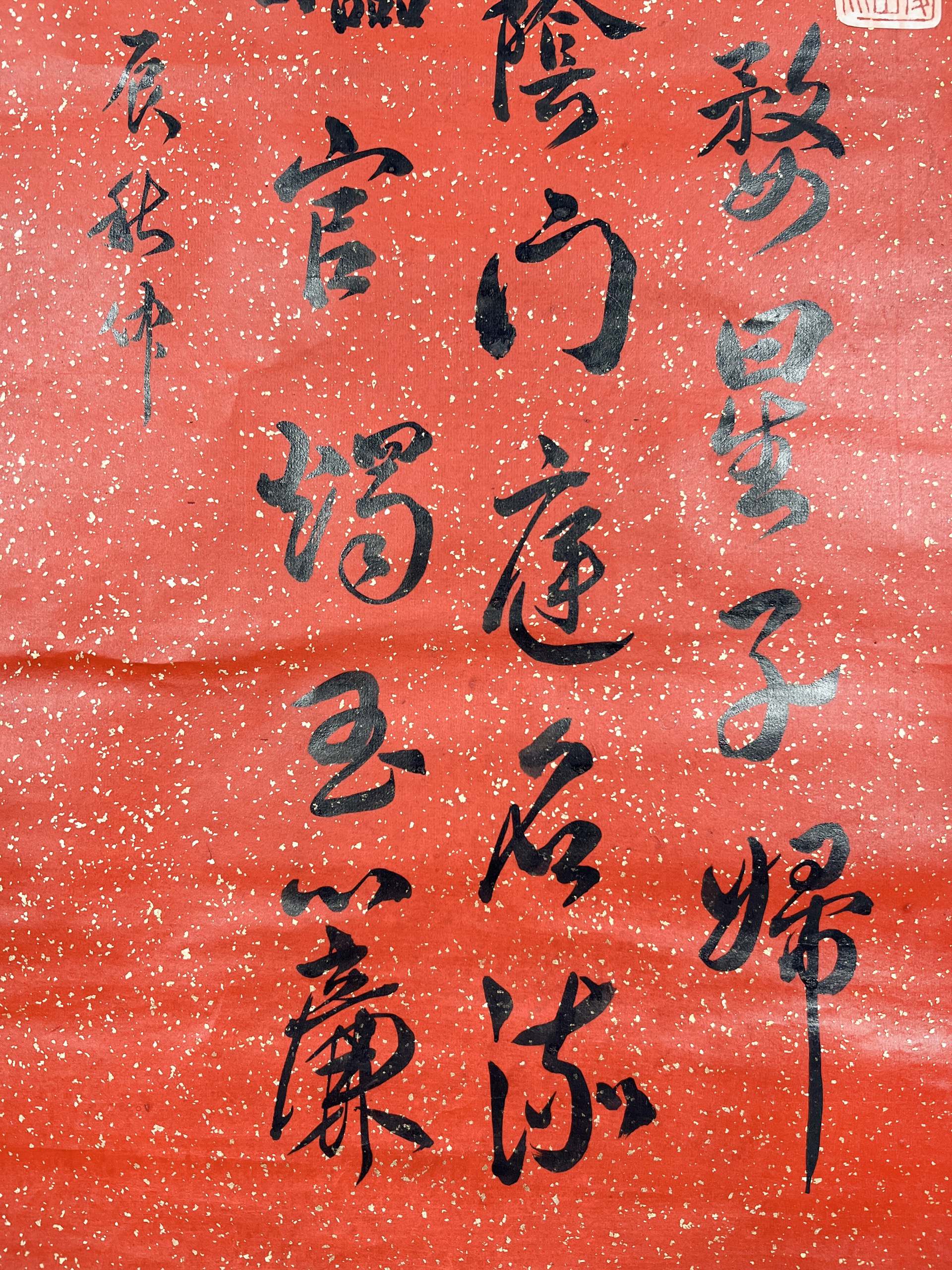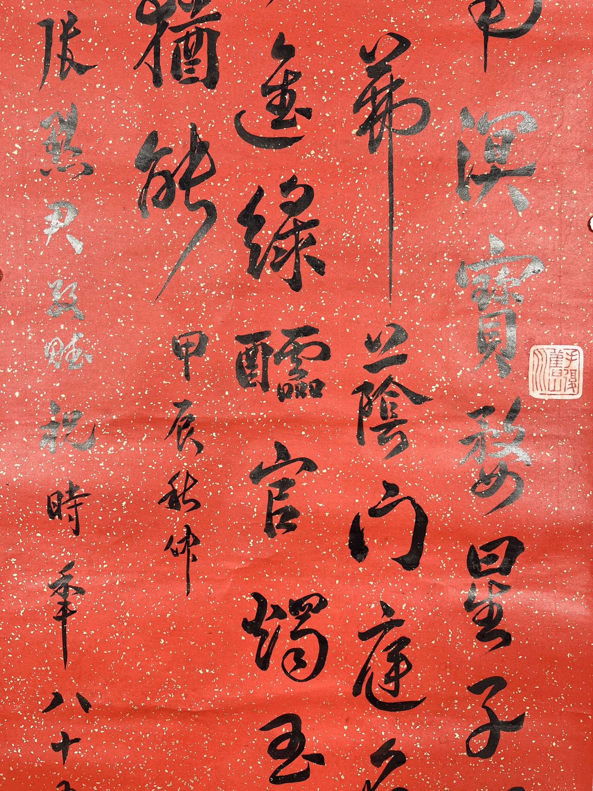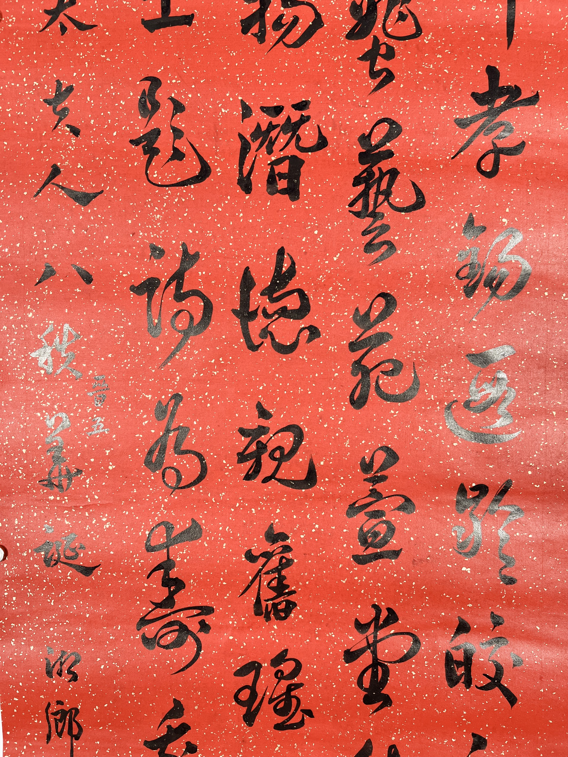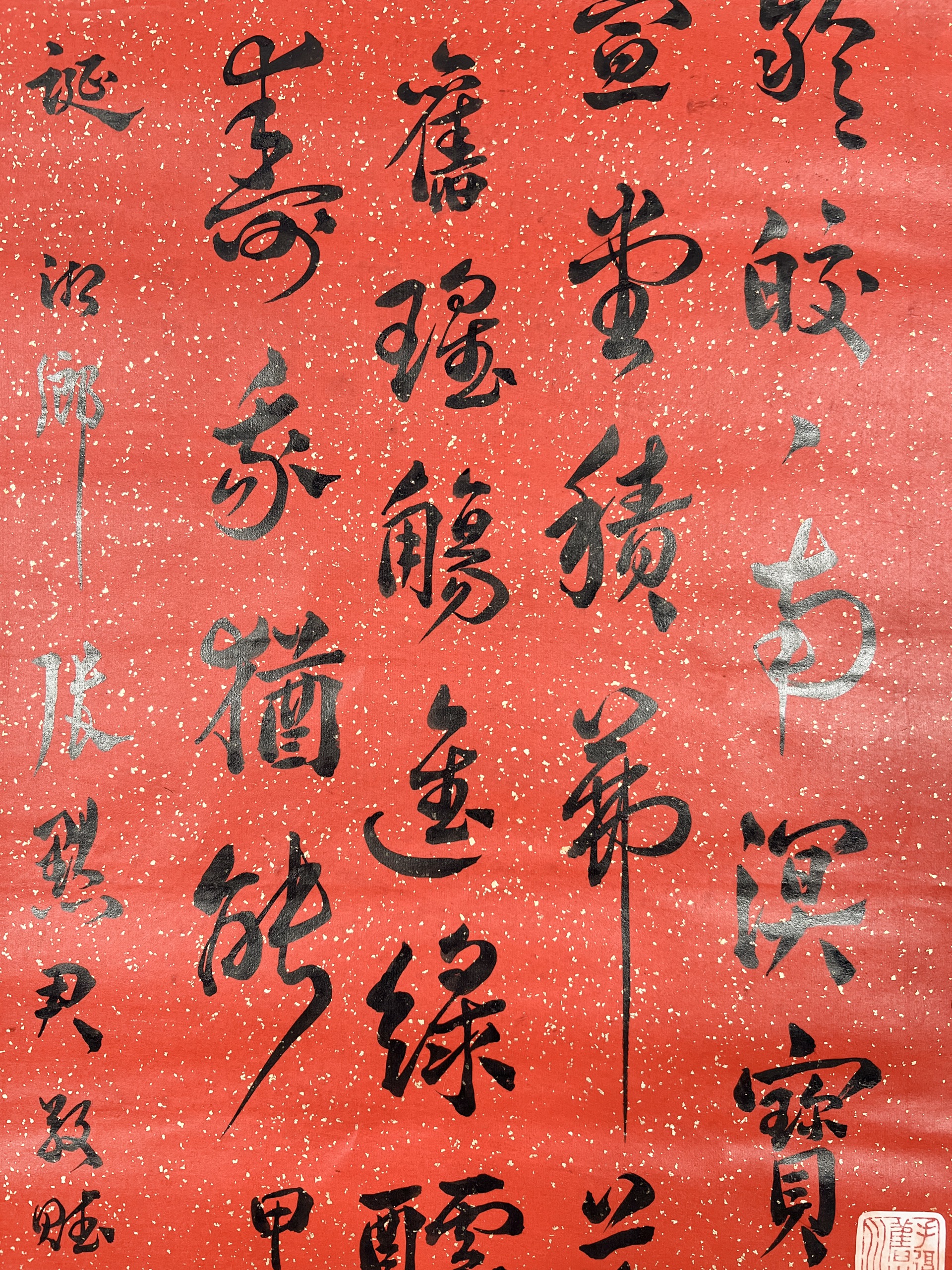 鏡片 水墨 紅灑金紙本 131x33.5cm