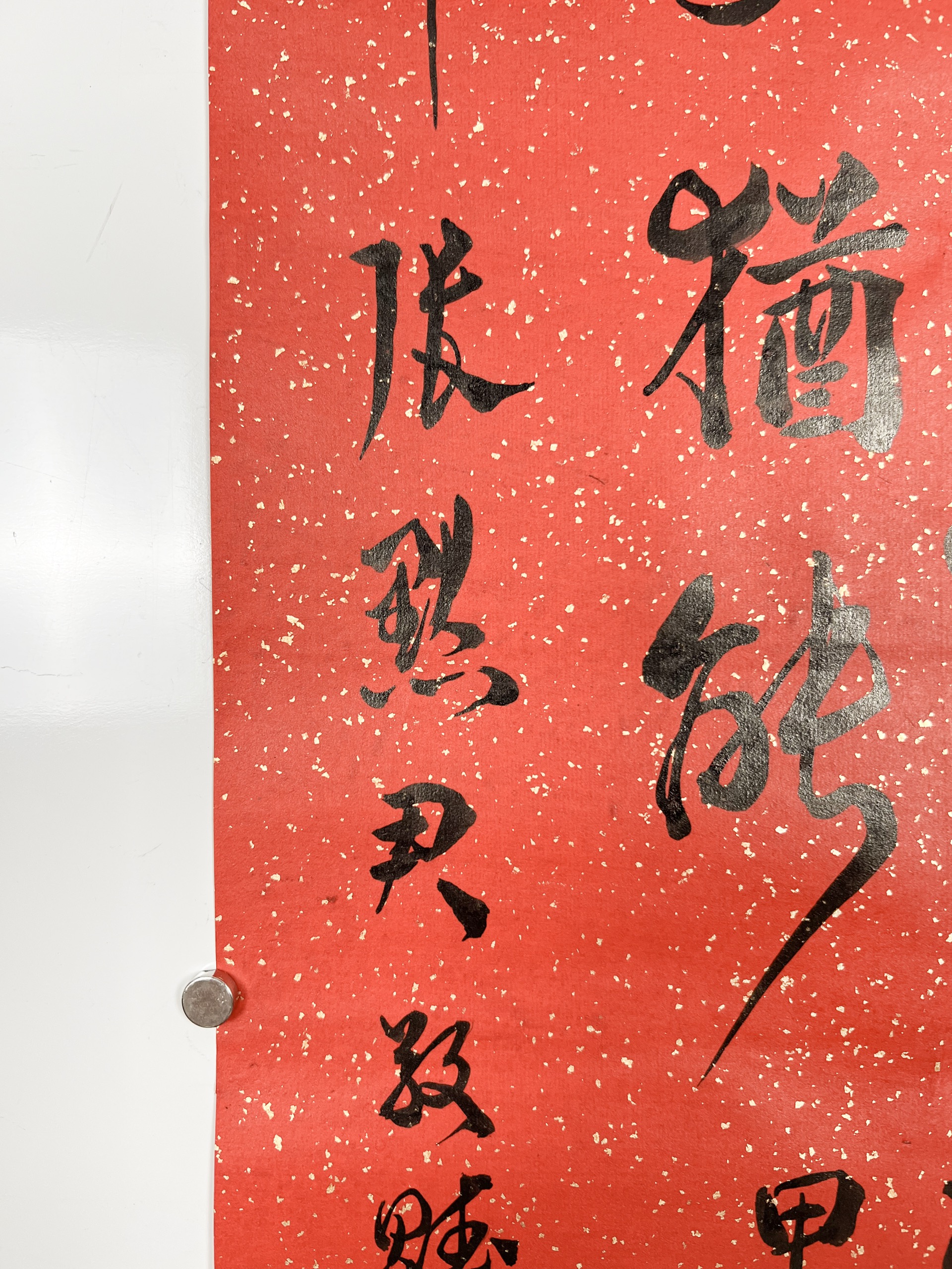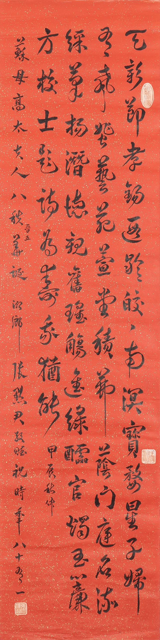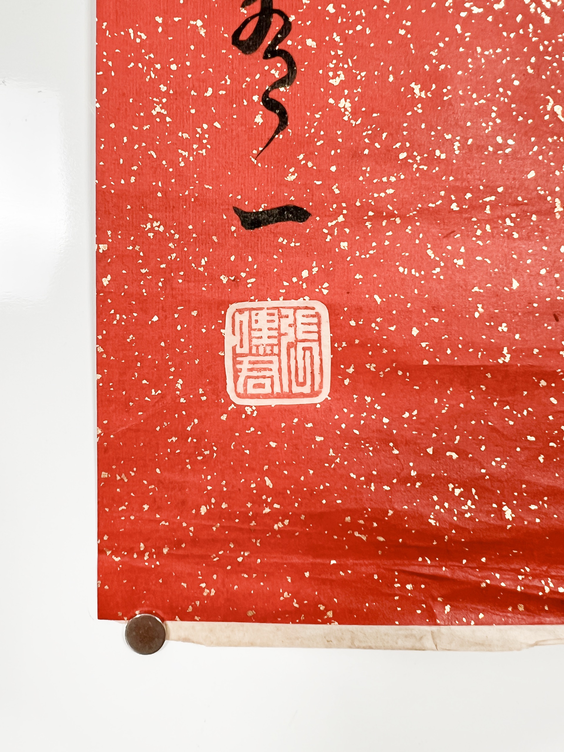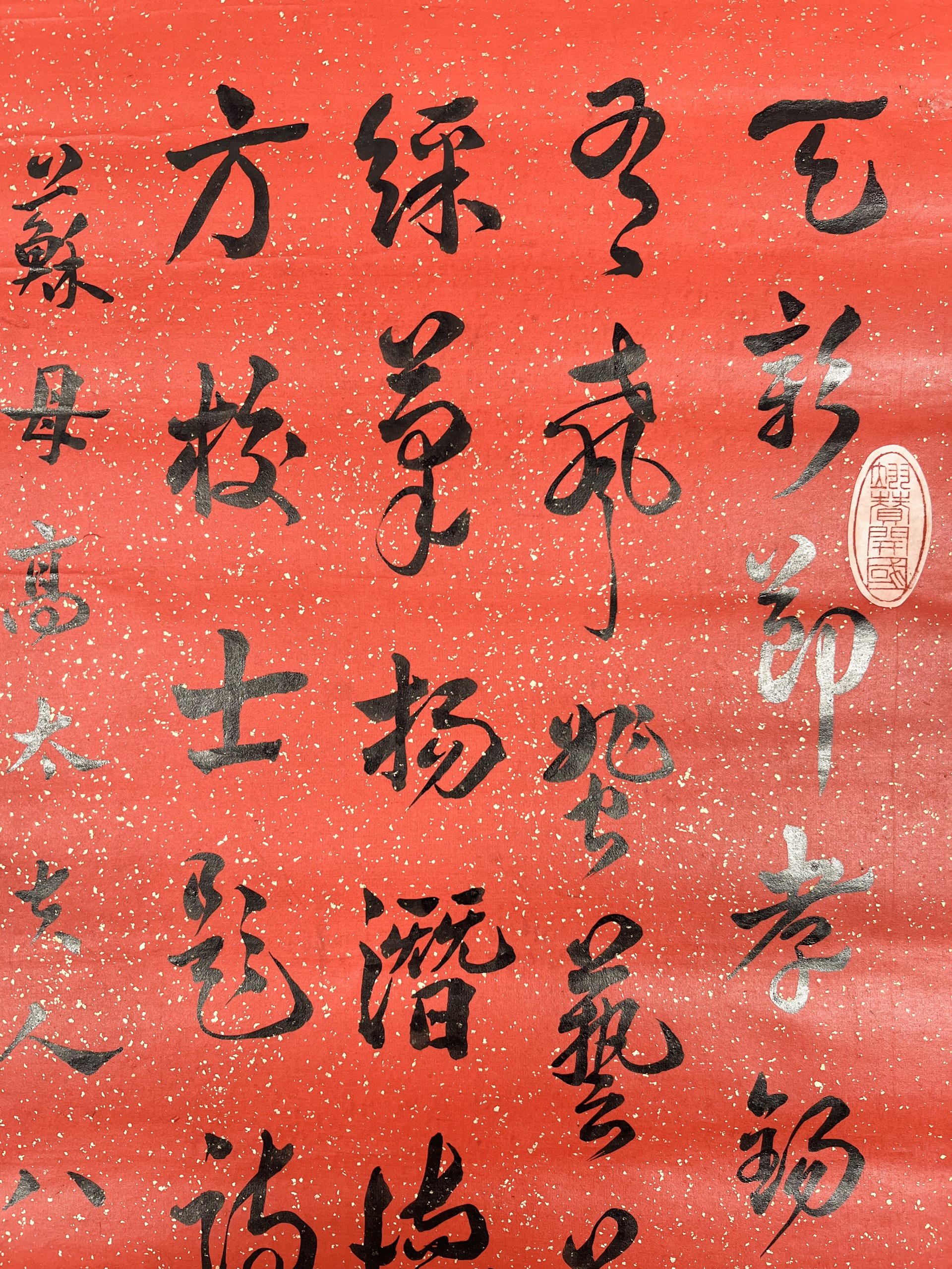 鏡片 水墨 紅灑金紙本 131x33.5cm
