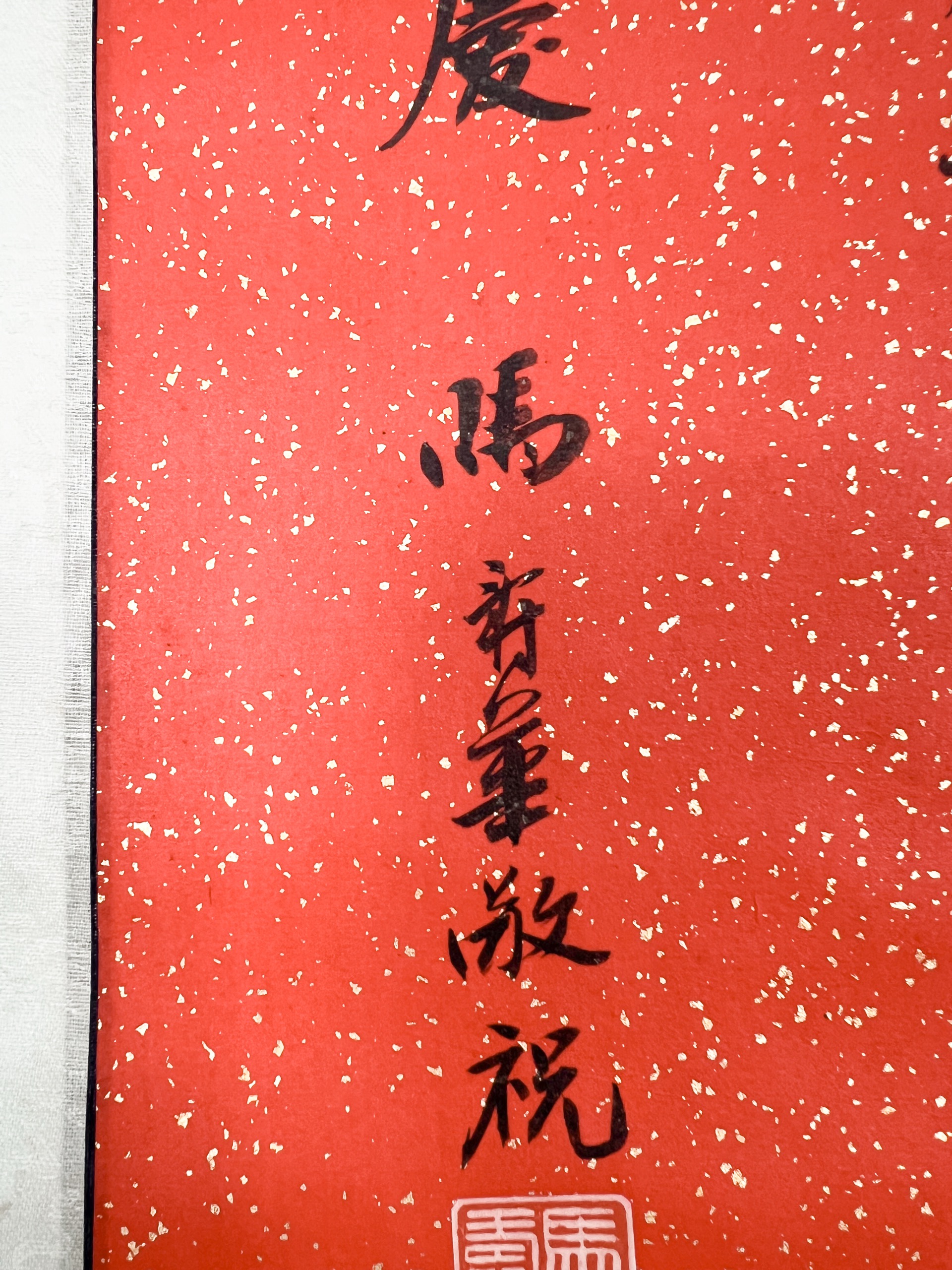 立軸 水墨 紅灑金紙本 67x37.8cm
