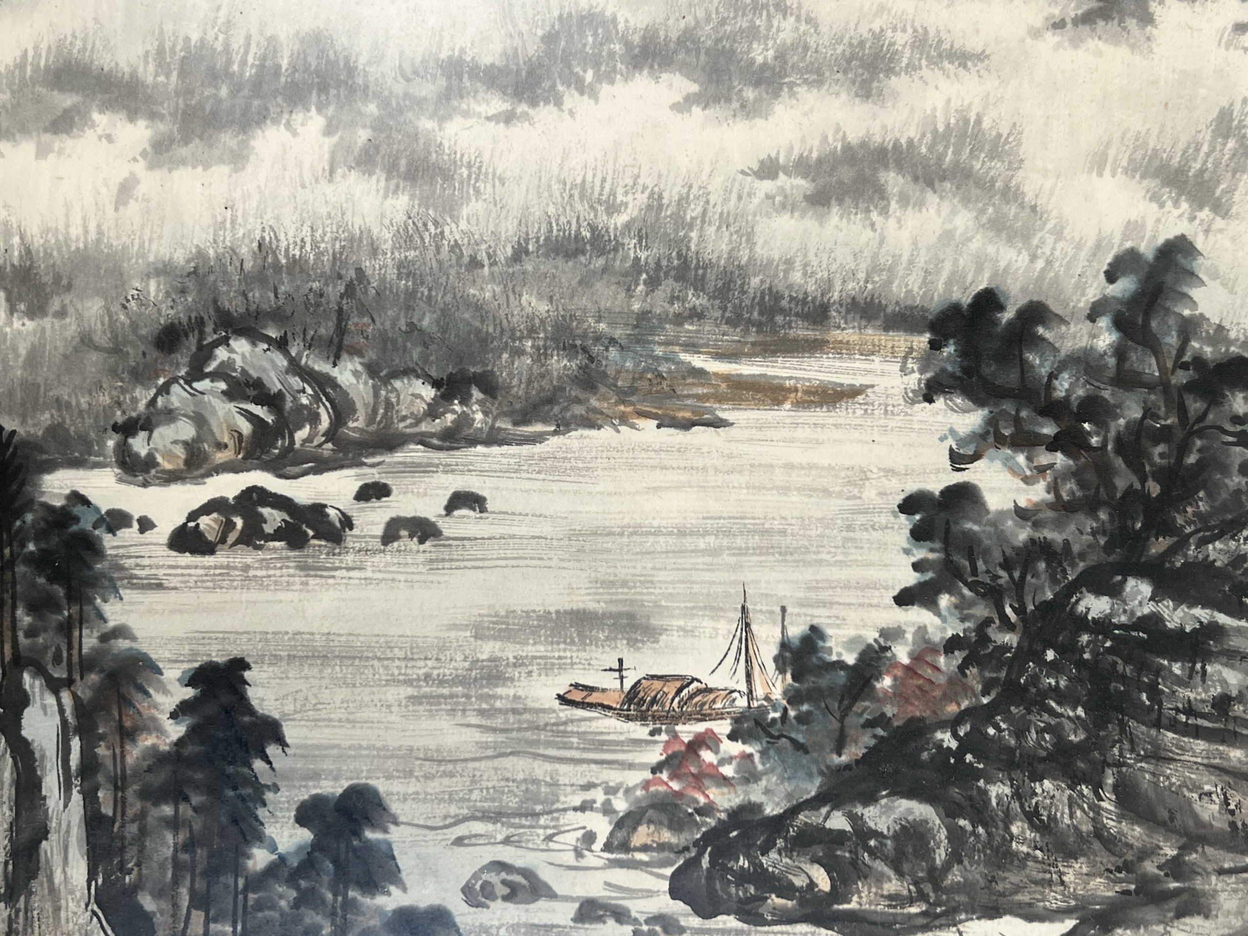 鏡框 設色 紙本 45x69cm