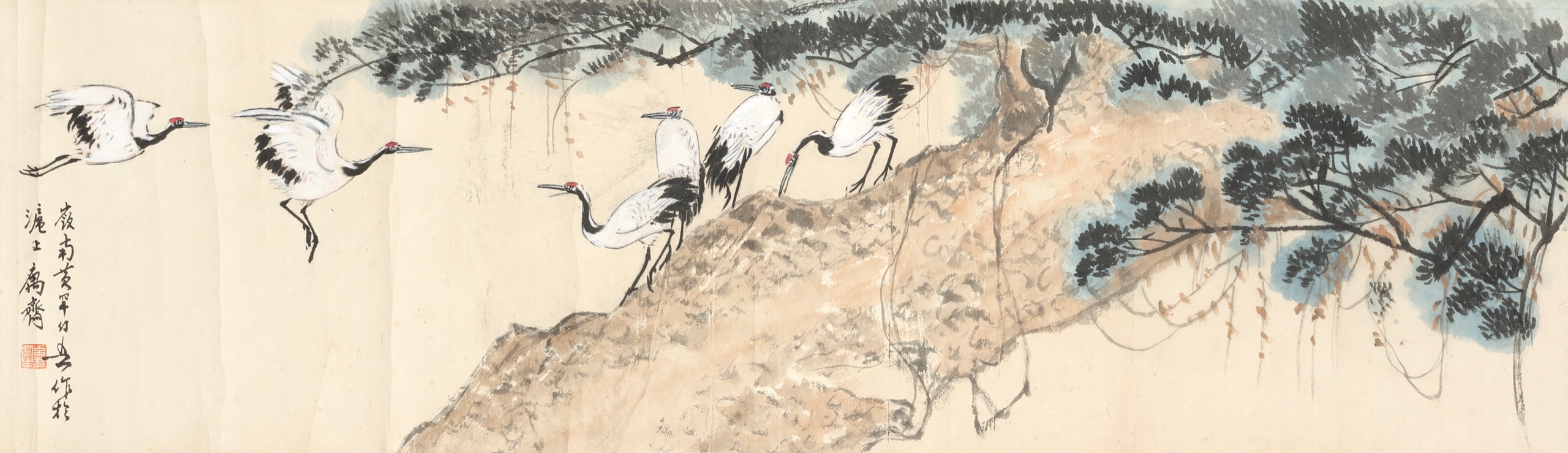 鏡片 設色 紙本 37x126cm