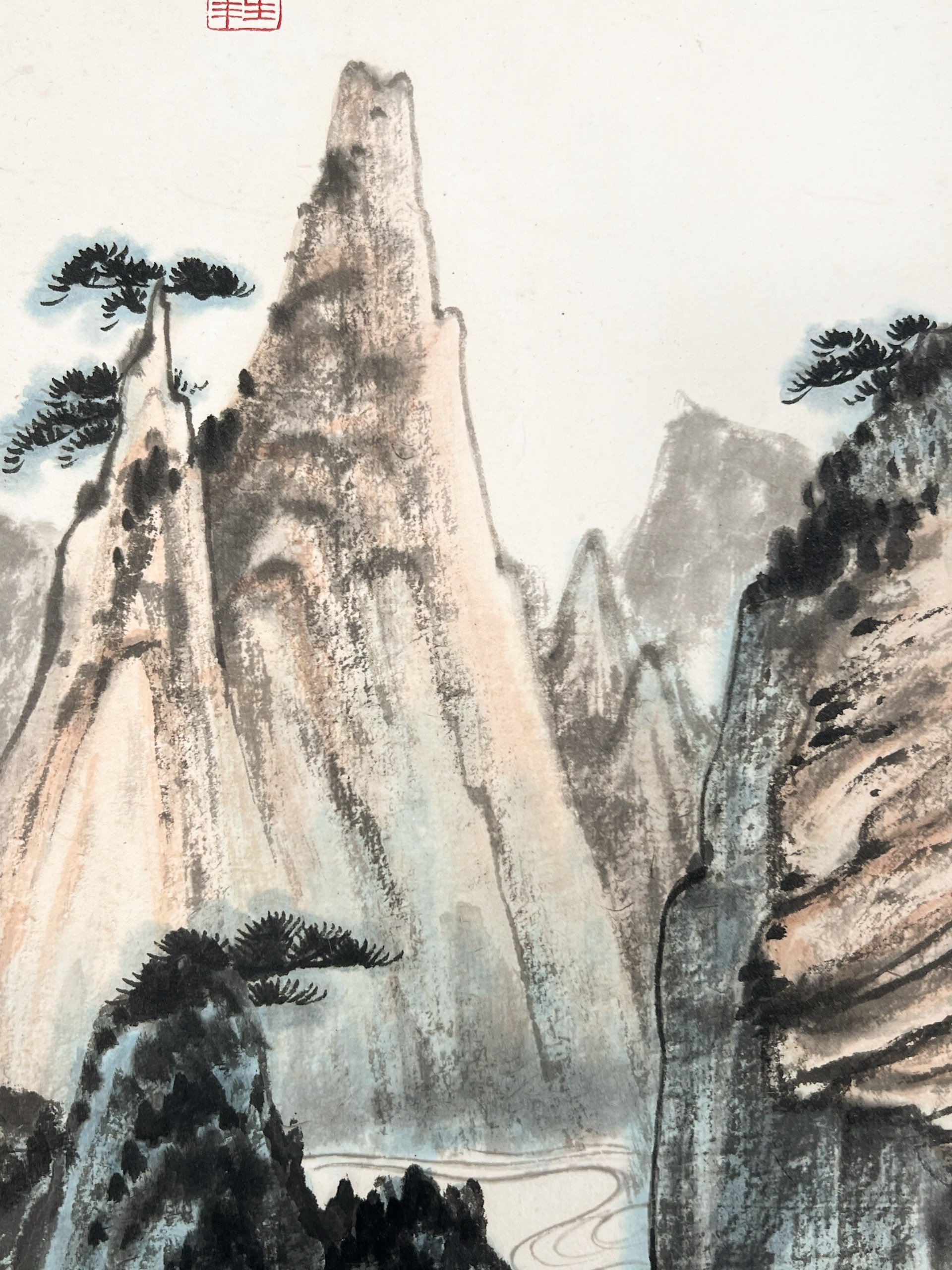 鏡片 設色 紙本 74x38cm