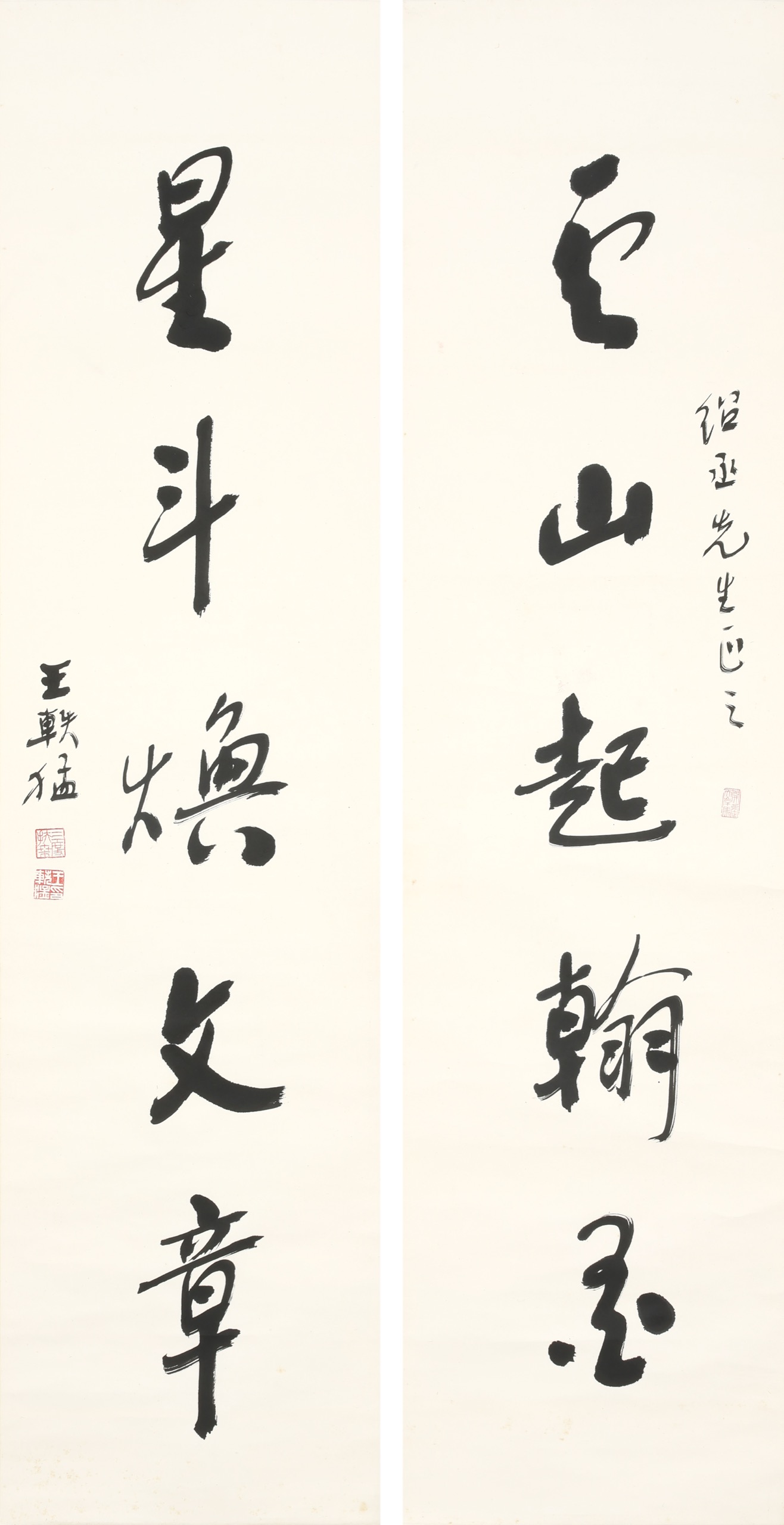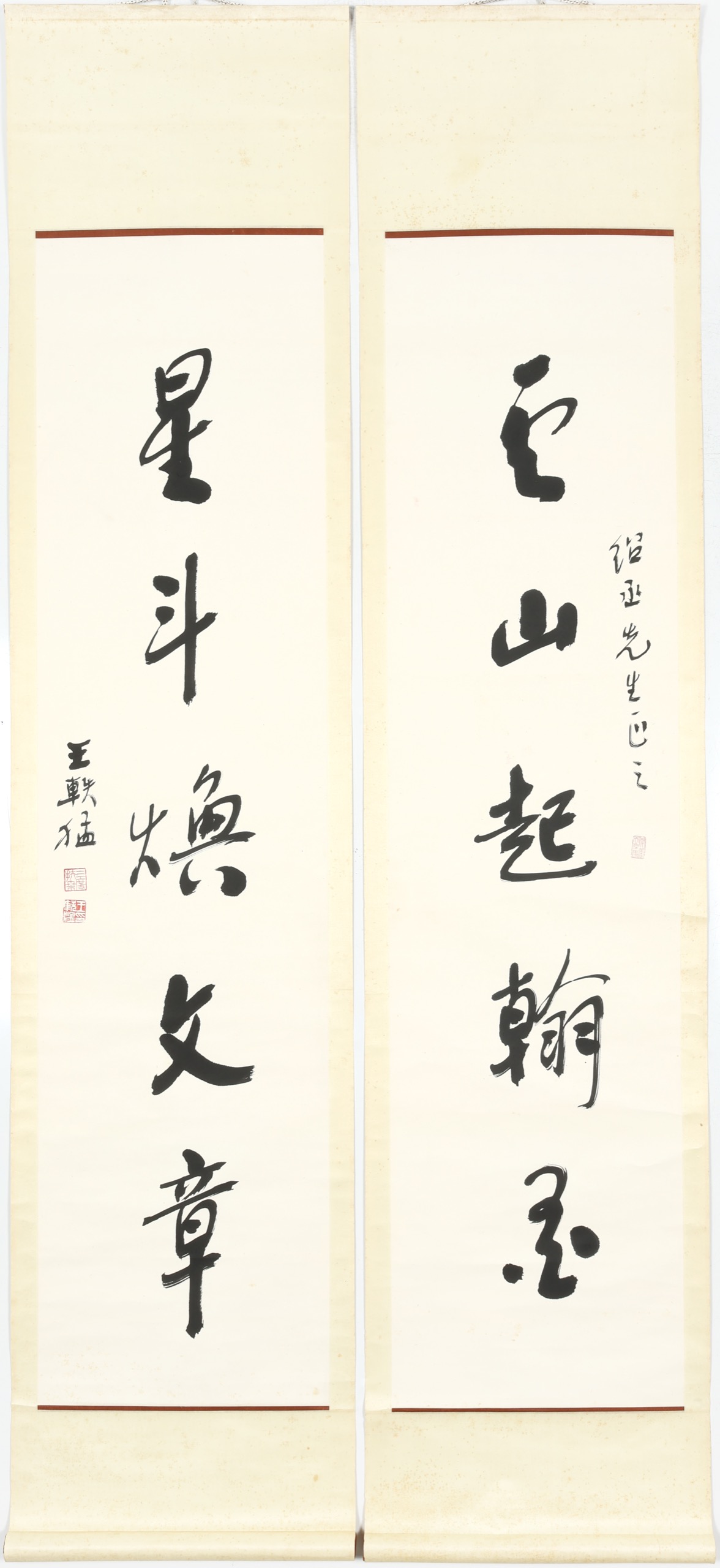 立軸 水墨 紙本 136x34cm x2