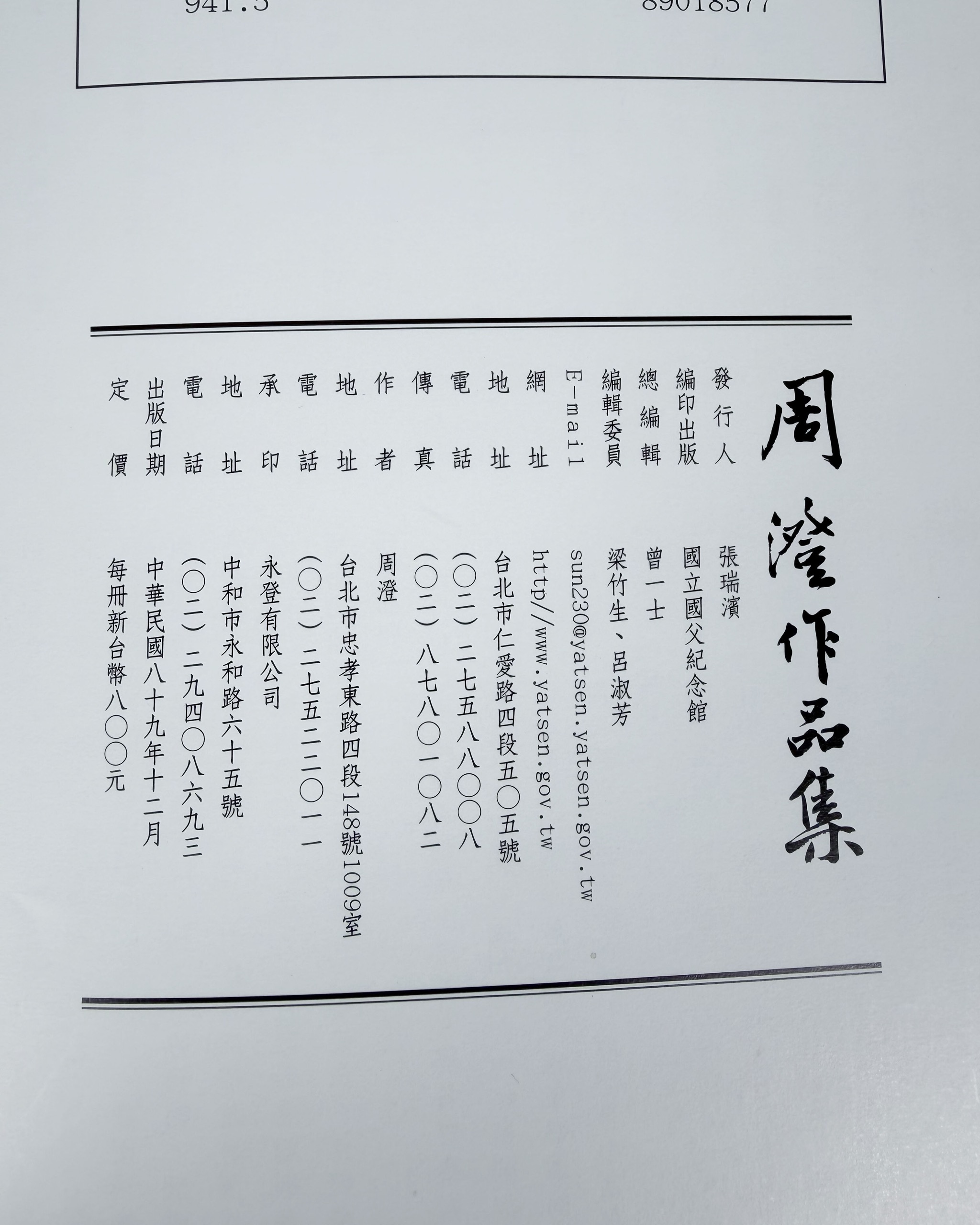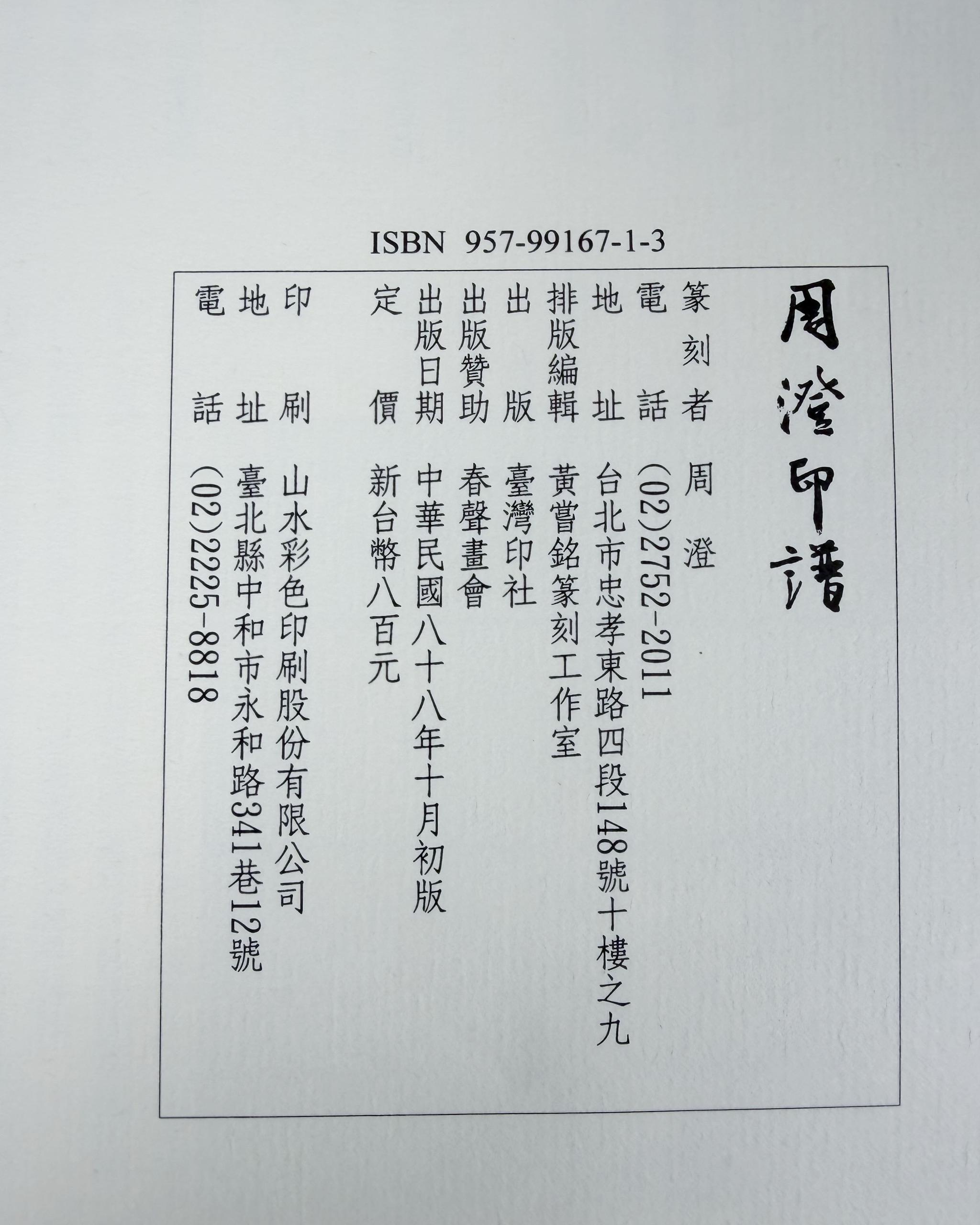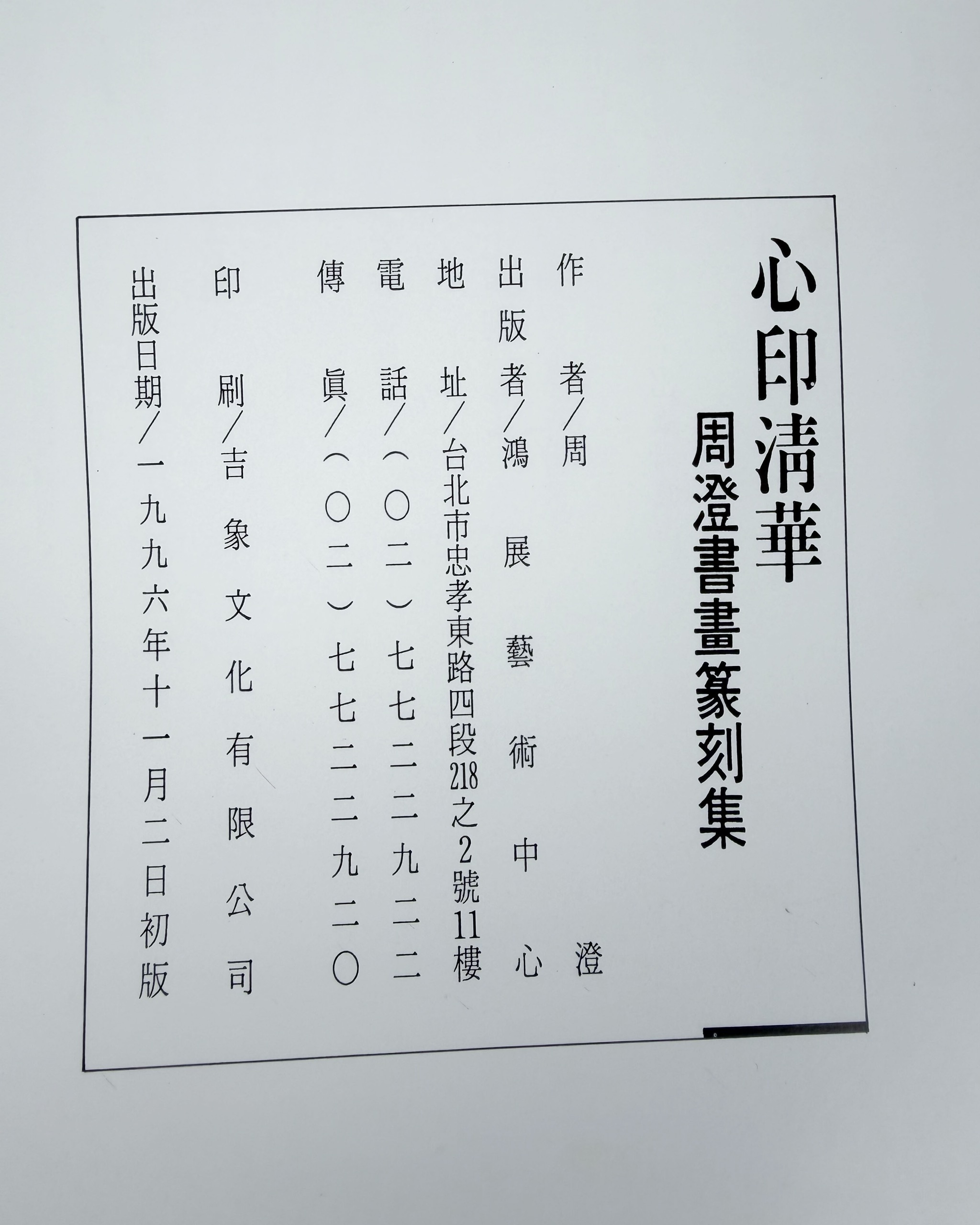 太平洋文化基金會、國立國父紀念館、藝術圖書公司、鴻展藝術中心、臺灣印社