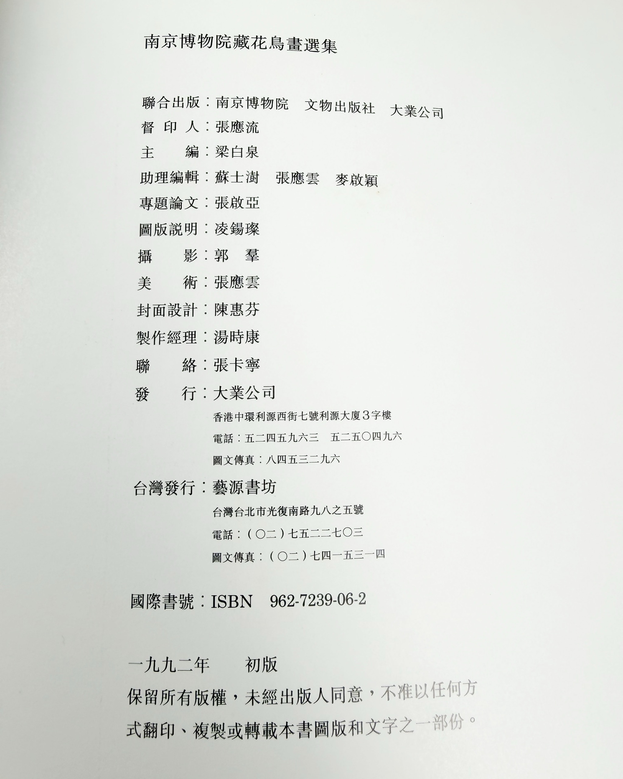 《中國歷代繪畫:故宮博物院藏畫集 VIII》、《明清花鳥畫集:南京博物院藏》等