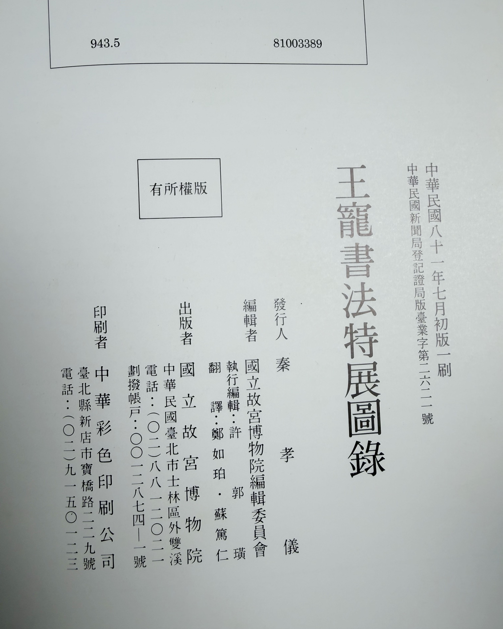 《世紀風華:鴻禧美術館海上繪畫百年展 (1840-1940)》、《王寵書法集》等