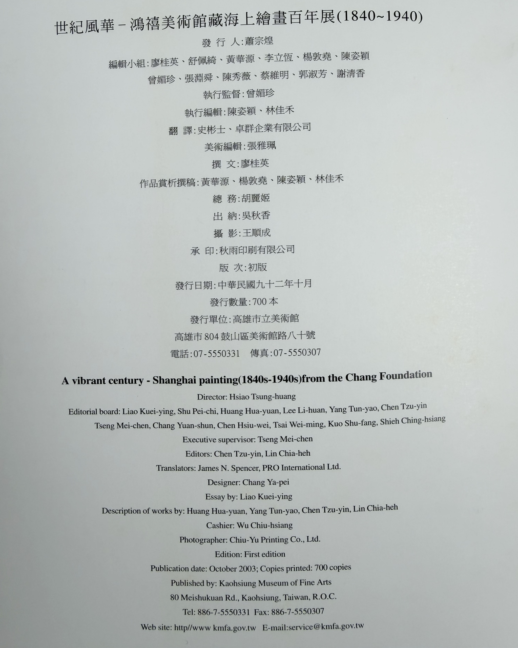- 《世紀風華:鴻禧美術館海上繪畫百年展 (1840-1940)》、《追索浙派》、《王寵書法集》、《書法之美特展圖錄》