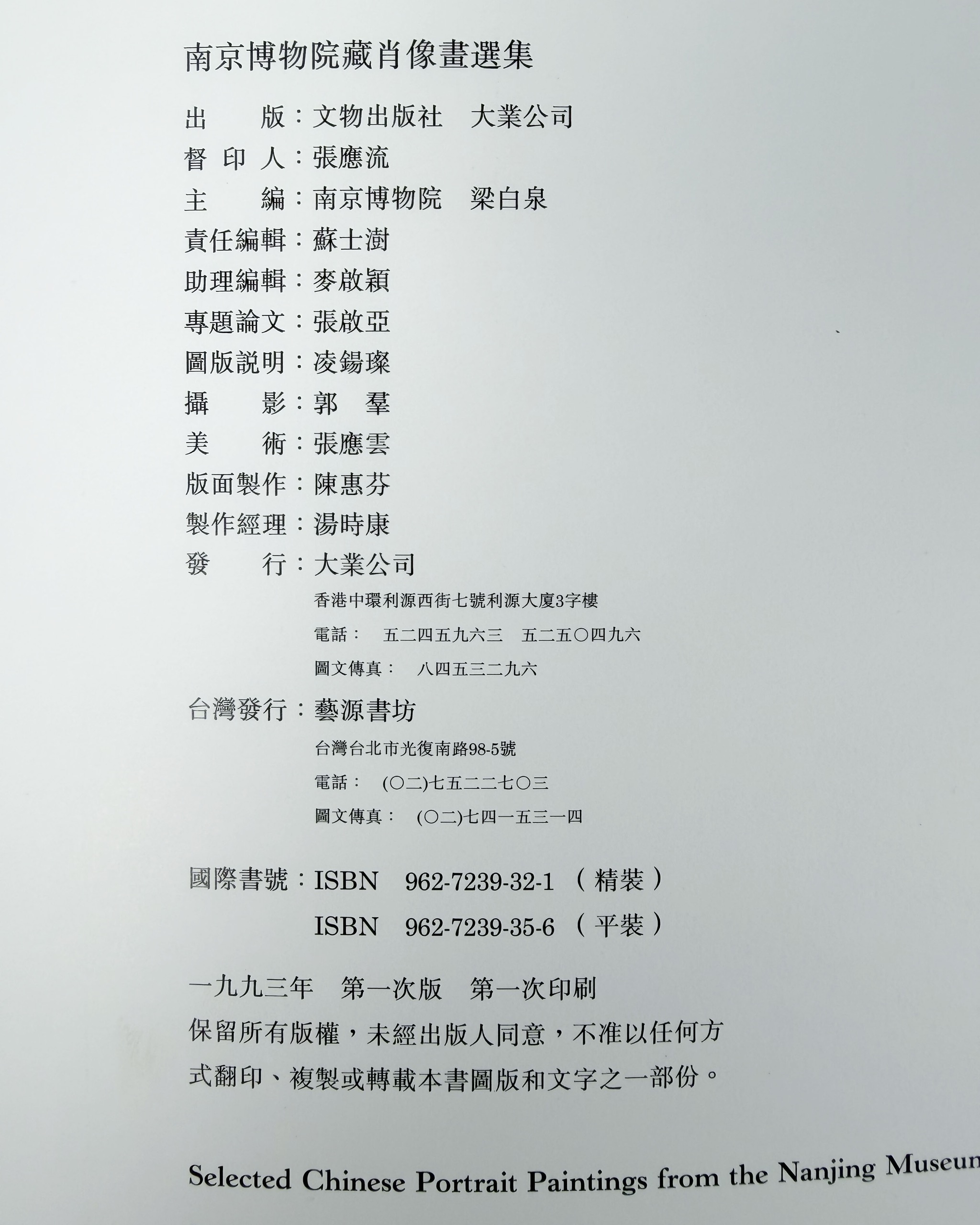 《中國肖像畫選集》、《乾隆時代繪畫特展》等